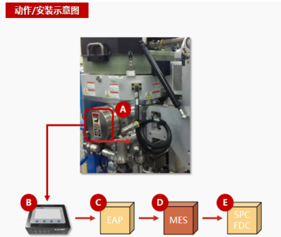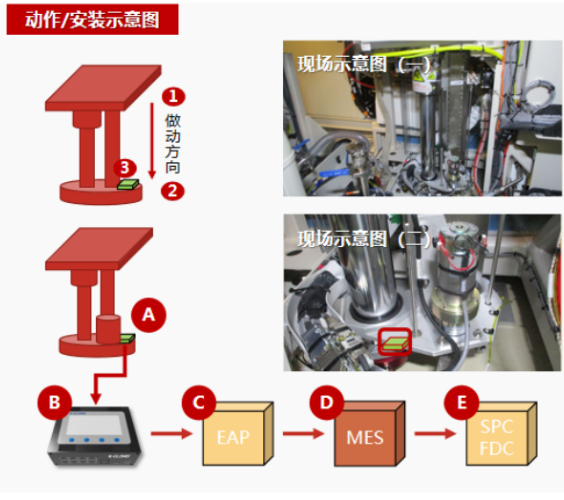 每次FOUP进机台时手臂会进行扫片Mapping的固定动作确认Wafer数量及位置,针对此动作安装测距sensor去监控每次Mapping的高度及运行时间进行历史数据比对达到手臂异常监控目的。