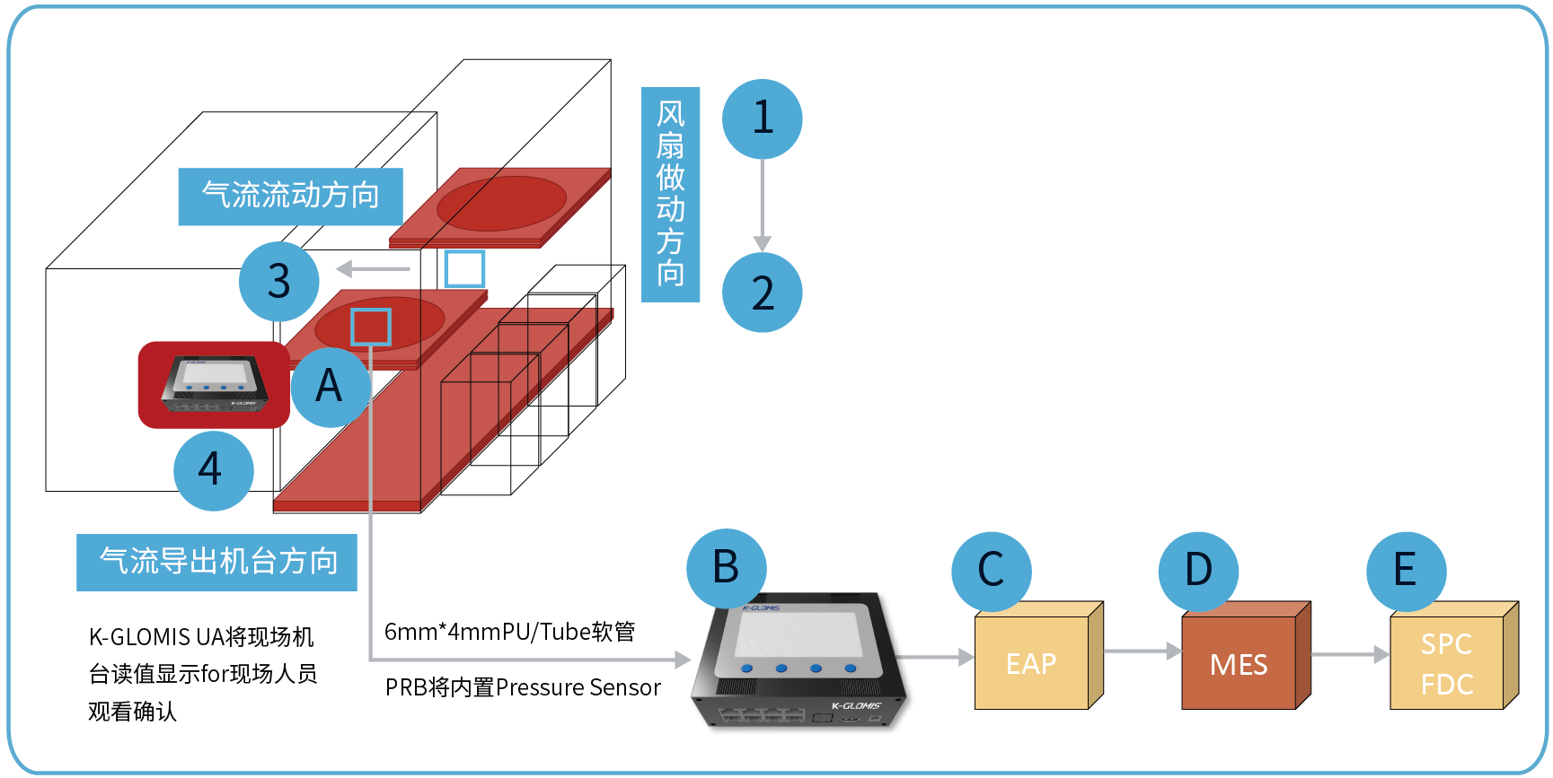 2. 提前预警风压机损坏或风压不足造成机台内部Particle囤堵,稳定生产良率。