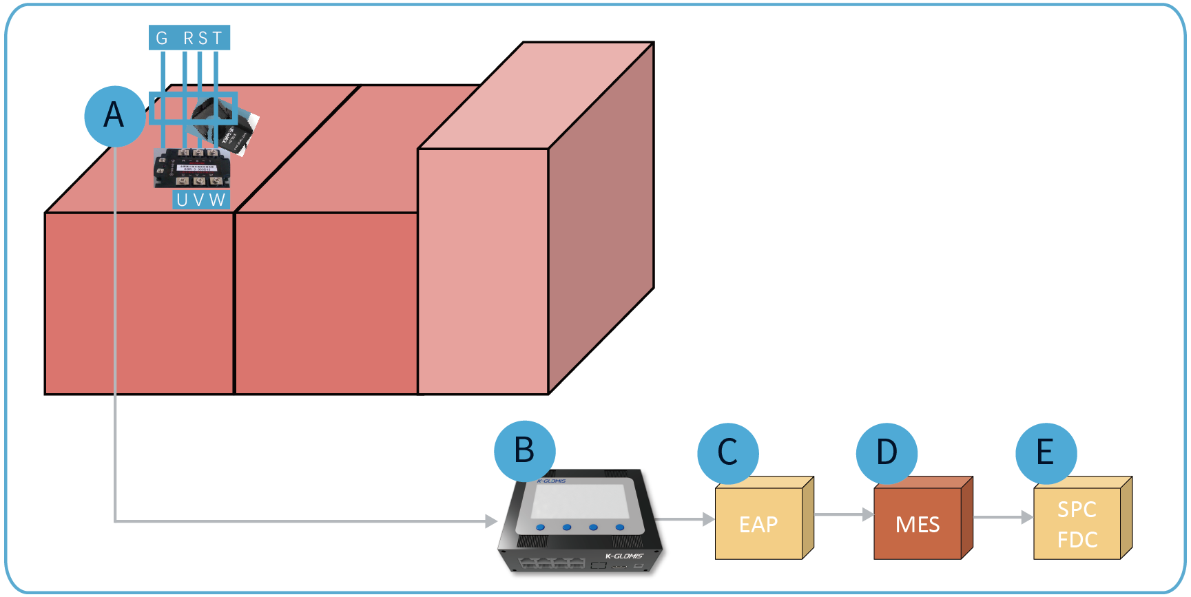 3. 透过K-GLOMIS UA将机台本身的数据缺陷,透过加装传感器完善生产数据